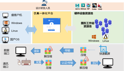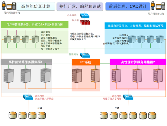 結(jié)合數(shù)字化設(shè)計流程,將設(shè)計、仿真(計算、優(yōu)化、前后處理、CAD設(shè)計)應(yīng)用集中到高性能計算系統(tǒng)上,確保項目涵蓋數(shù)字化設(shè)計的整個過程。為了保證易用性,高性能計算系統(tǒng)通過瀏覽器,用一個統(tǒng)一的門戶實現(xiàn):CAD設(shè)計和CAE前后處理等三維圖形應(yīng)用軟件的使用和調(diào)度管理、仿真類及優(yōu)化類應(yīng)用軟件的使用和調(diào)度管理,從而建設(shè)一個涵蓋設(shè)計、仿真、優(yōu)化、前后處理統(tǒng)一的綜合應(yīng)用服務(wù)平臺,為設(shè)計師提供高效的計算、設(shè)計環(huán)境。