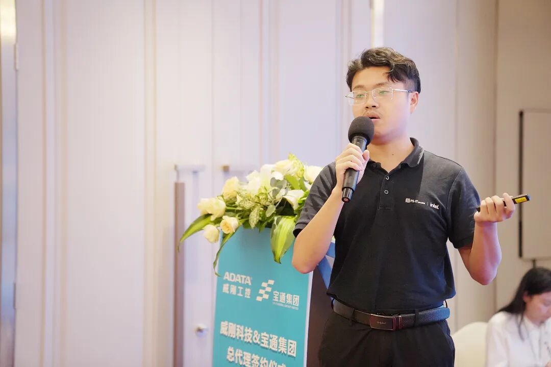 本次會議是威剛科技工控事業群在線下的首次亮相,工控事業群大中華業務總監王皓正和產品經理許郁雯為現場的百余位合作伙伴?客戶及同行們,詳細介紹了威剛工控事業群布局?AI工業級解決方案?專業的軟硬整合技術?下一代存儲技術與應用展望等內容?